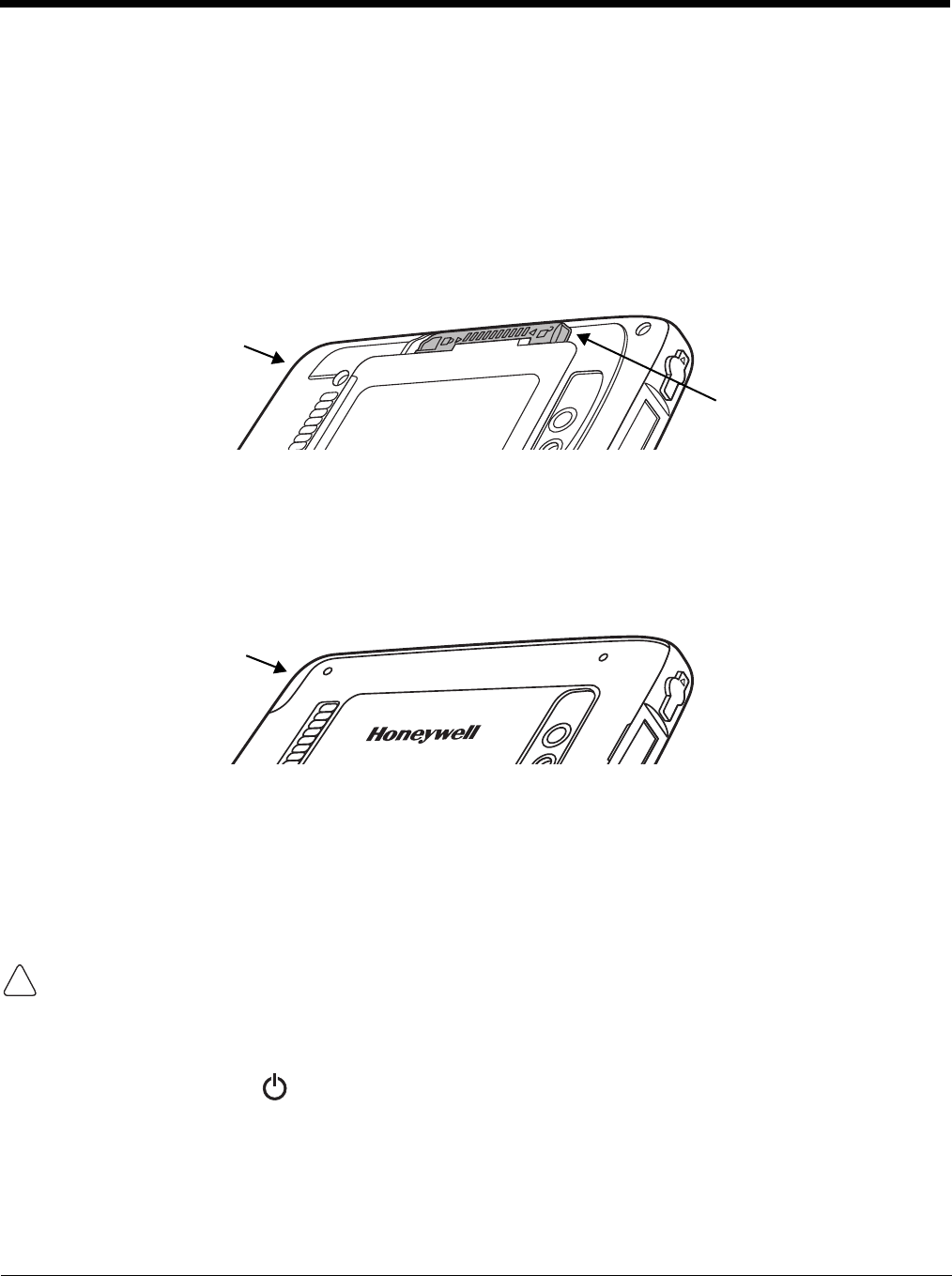 Note: The following illustrations depict a standard battery with a standard battery door; however, battery removal/