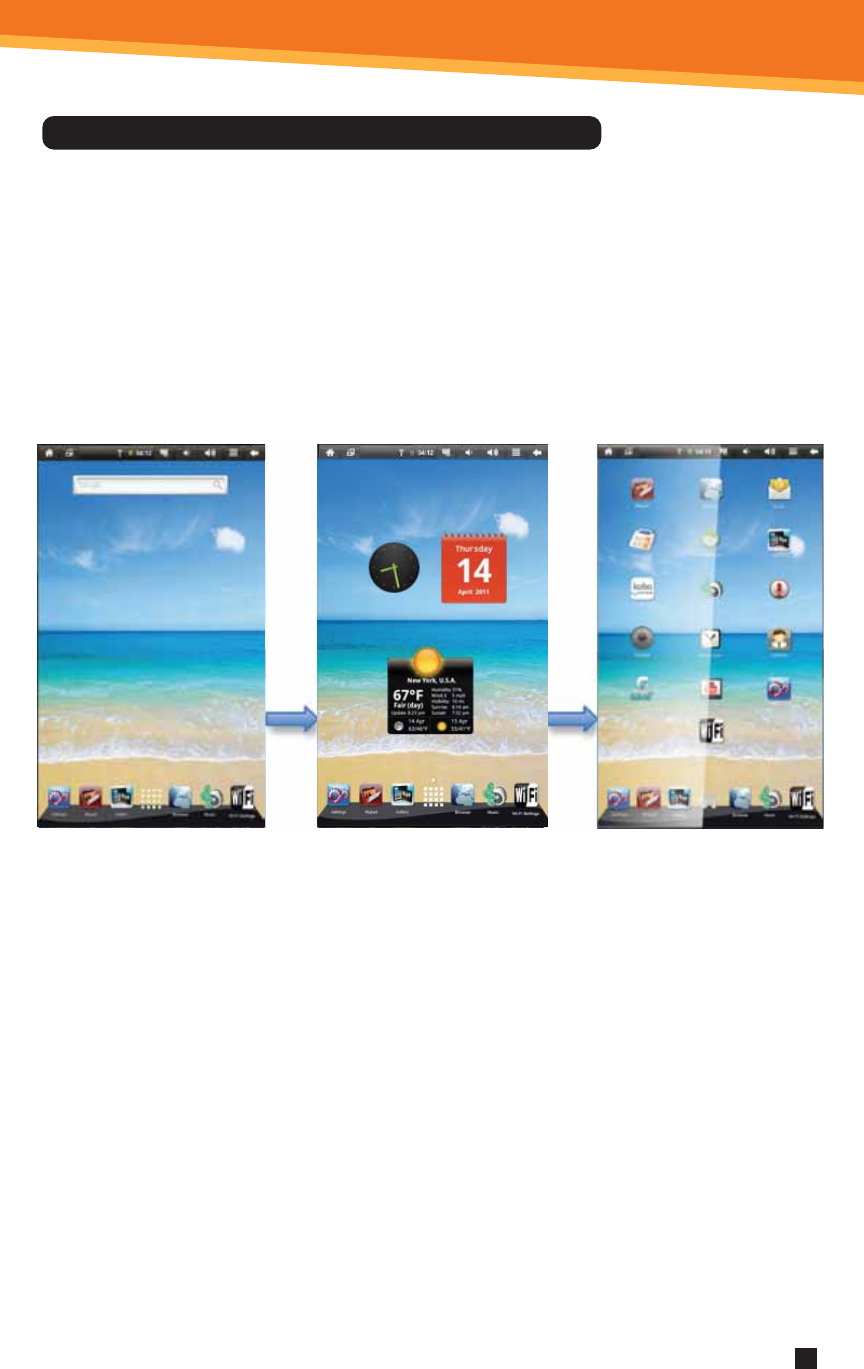 • The Application Panel displays the Android® applications pre-installed on the device. To go from the Home